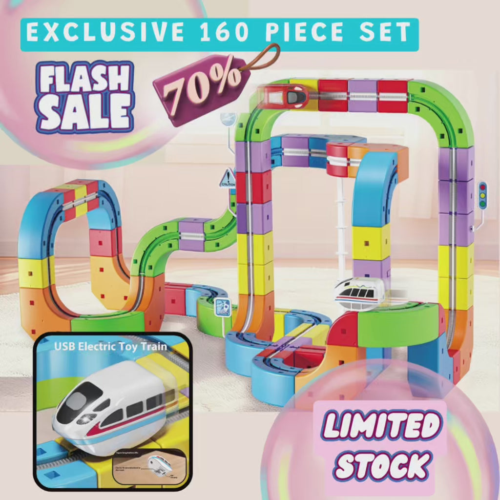 Flat, predictable toys can't compete with a child's boundless imagination. Enter the Electric Train Set Flexible Race Track: Modular clip-fit cubes let kids construct gravity-defying structures with vertical climbs, bridges, and sideways drives. The battery-powered train (requires 2 AA batteries, not included) powers through every twist, teaching balance and motion while delivering non-stop thrills. Recharge the train via USB charging. Choose from Starter (62 pcs), Premium (83 pcs), or Master (121 pcs) for scalable fun.